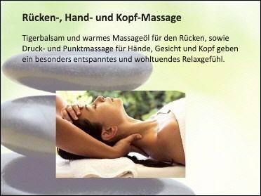 Rücken-, Hand- und Kopfmassage